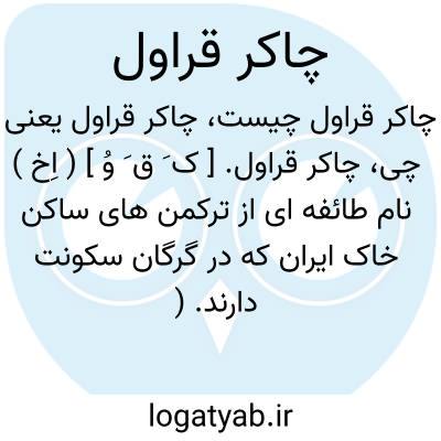 چاکر قراول. [ ک َ ق َ وُ ] ( اِخ ) نام طائفه ای از ترکمن های ساکن خاک ایران که در گرگان سکونت دارند. ( جغرافیای سیاسی کیهان ص 103 ).