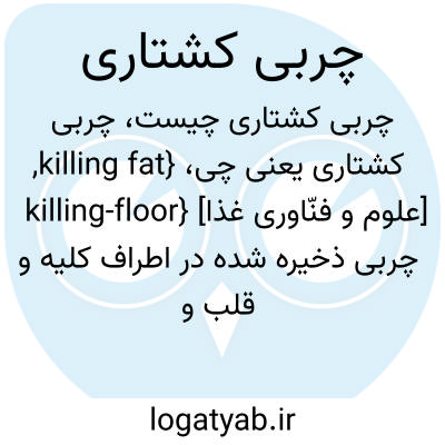 {killing fat, killing-floor} [علوم و فنّاوری غذا] چربی ذخیره شده در اطراف کلیه و قلب و رودۀ حیوانات که در هنگام کشتار از لاشه جدا می شود