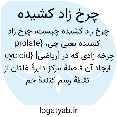 {prolate cycloid} [ریاضی] چرخه زادی که در ایجاد آن فاصلۀ مرکز دایرۀ غلتان از نقطۀ رسم کنندۀ خم بزرگ تر از شعاع دایره باشد