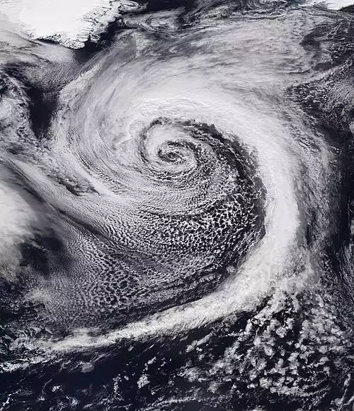{extratropical cyclone} [علوم جَوّ] توفانی با مقیاس چرخندی در خارج از منطقۀ حارّه