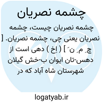 چشمه نصریان. [ چ ِ م ِ ن َ ] ( اِخ ) دهی است از دهس-تان ایوان ب-خش گیلان شهرستان شاه آباد که در 3 هزارگزی جنوب خاوری جوی زر کنار راه شوسه شاه آباد به ایلام واقع است. دشت و سردسیر است و50 تن سکنه دارد. آبش از سراب ایوان. محصولش غلات، حبوبات، لبنیات، ذرت و توتون و شغل اهالی زراعت و گله داری است. ساکنین آبادی چادرنشین هستند و در زمستان به گرمسیر میروند. ( از فرهنگ جغرافیایی ایران ج 5 ).