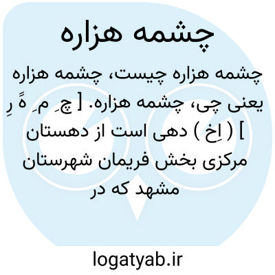 چشمه هزاره. [ چ ِ م ِ هََ رِ ] ( اِخ ) دهی است از دهستان مرکزی بخش فریمان شهرستان مشهد که در 10هزارگزی خاور فریمان واقع است. دامنه و معتدل است و12 تن سکنه دارد. ( از فرهنگ جغرافیایی ایران ج 9 ).