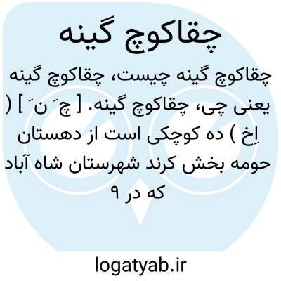چقاکوچ گینه. [ چ َ ن َ ] ( اِخ ) ده کوچکی است از دهستان حومه بخش کرند شهرستان شاه آباد که در 9 هزارگزی جنوب خاوری کرند و 1500 گزی خاور طلسم واقع است و 20 تن سکنه دارد. ( از فرهنگ جغرافیائی ایران ج 5 ).