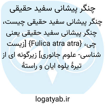 {Fulica atra atra} [زیست شناسی- علوم جانوری] زیرگونه ای از تیرۀ یلوه ایان و راستۀ درناسانان به رنگ سیاه دودی با منقار و پیشانی سفید و پاهای بلند و به رنگ سبز خاکستری