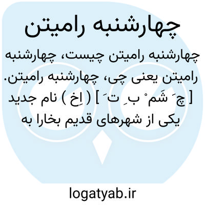 چهارشنبه رامیتن. [ چ َ شَم ْ ب ِ ت َ ] ( اِخ ) نام جدید یکی از شهرهای قدیم بخارا به اسم رامیثن یا ریامیثن یا اریامیثن یا رامیثنیه که تا قرن هشتم بنام رامیتن معروف بوده است اثری ازاین شهر امروز به اسم «چهارشنبه رامیتن » هنوز باقی است و المقدسی آن را بخارای قدیم یا «بخارالقدیمه » دانسته است. ( شرح احوال و اشعار رودکی ج 1 صص 75 - 74 ).