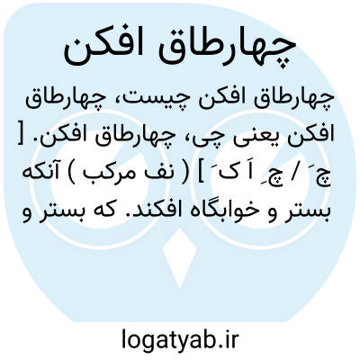 چهارطاق افکن. [ چ َ / چ ِ اَ ک َ ] ( نف مرکب ) آنکه بستر و خوابگاه افکند. که بستر و خوابگاه گسترد. || فراش. ( ناظم الاطباء ). کنایه از فراش است. رجوع به چارطاق افکن شود.