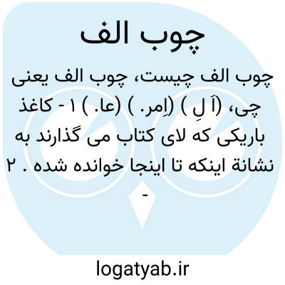 (در تداول عامه: چوغِ الف) چوبی بلند و باریک که ملا یا معلم، با آن نوشته های روی تخته سیاه را نشان می داد و هم از آن برای تنبیه شاگردان استفاده می کرد؛ نیز پیکانی از لایه ای کاغذ که کودکان می سازند تا به وقت خواندنِ کتاب یا قرآن، به جای کشیدن انگشت بر سطور، آن را بر سطرها بگردانند و رشتۀ مطلب را گم نکنند. مؤمنان، به ویژه زنانی که جلسه های قرائت قرآن یا دعا برپا می دارند، چوب الف را به توجیهِ آن که تماسِ انگشتان آدمی، به امکان ناتمیزی آن ها، با کلمه های مقدس قرآن جایز نیست، به کار می برند. چوب الف، همچنان برای نشانۀ صفحه ای که در نوبتِ بعدی باید خوانده شود، لای صفحه نهاده می شود. نیز، به مجاز عامیانه، شخص درازقامتِ باریک اندام را گویند.