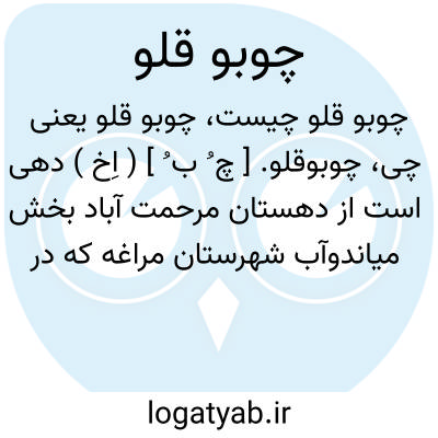 چوبوقلو. [ چ ُ ب ُ ] ( اِخ ) دهی است از دهستان مرحمت آباد بخش میاندوآب شهرستان مراغه که در 29 هزارگزی شمال باختری میاندوآب و 5هزارگزی باختر راه ارابه رو میاندوآب به بناب واقع است. جلگه و باتلاقی است. هوایش معتدل است. 1006 تن سکنه دارد. از زرینه رود و چاه مشروب میشود. از محصولاتش غلات، چغندر، کشمش، بادام، کرچک و پنبه است. مردمش بزراعت و صنایع دستی از قبیل جاجیم بافی اشتغال دارند.راهش مالرو است. ( از فرهنگ جغرافیایی ایران ج 4 ).