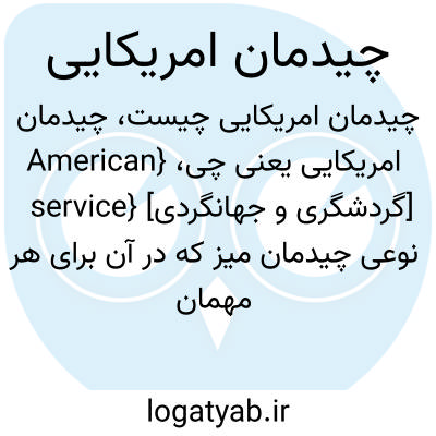 {American service} [گردشگری و جهانگردی] نوعی چیدمان میز که در آن برای هر مهمان کارد و چنگال و پیش دستی و دستمال سفره و دو یا سه لیوان و گاه یک فنجان و نعلبکی در نظر گرفته می شود