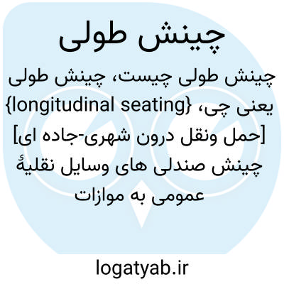 {longitudinal seating} [حمل ونقل درون شهری-جاده ای] چینش صندلی های وسایل نقلیۀ عمومی به موازات دیواره های جانبی به نحوی که مسافران عمود بر راستای حرکت نشسته باشند