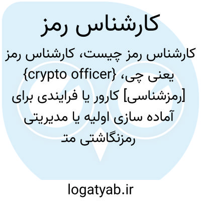 {crypto officer} [رمزشناسی] کارور یا فرایندی برای آماده سازی اولیه یا مدیریتی رمزنگاشتی متـ. مسئول رمز