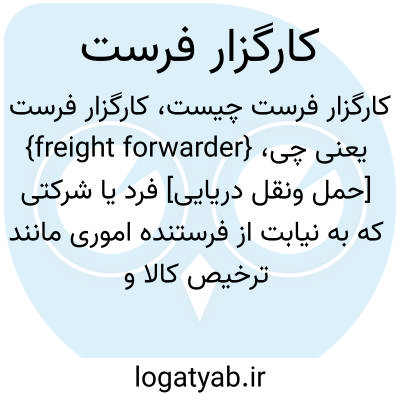 {freight forwarder} [حمل ونقل دریایی] فرد یا شرکتی که به نیابت از فرستنده اموری مانند ترخیص کالا و ذخیرۀ جا را بر عهده می گیرد
