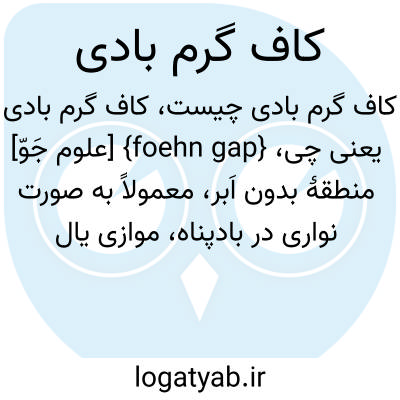 {foehn gap} [علوم جَوّ] منطقۀ بدون اَبر، معمولاً به صورت نواری در بادپناه، موازی یال کوهستان متـ. وقفۀ گرم بادی foehn break