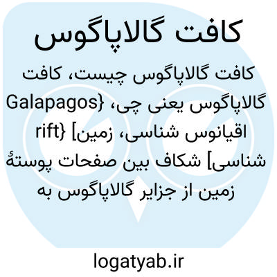 {Galapagos rift} [اقیانوس شناسی، زمین شناسی] شکاف بین صفحات پوستۀ زمین از جزایر گالاپاگوس به سمت امریکای جنوبی که ازنظر زمین شناختی و اجتماع های زیستیِ مجرایِ گرمابی بسیار حائز اهمیت است