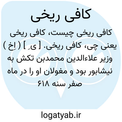 کافی ریخی. [ ی ِ ] ( اِخ ) وزیر علاءالدین محمدبن تکش به نیشابور بود و مغولان او را در ماه صفر سنه 618 هَ.ق. بکشتند. رجوع به «ریخ » در معجم البلدان شود.