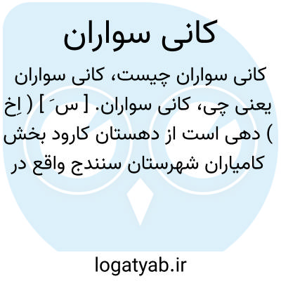 کانی سواران. [ س َ ] ( اِخ ) دهی است از دهستان کارود بخش کامیاران شهرستان سنندج واقع در 46هزارگزی شمال خاوری کامیاران و 8هزارگزی شمال قورق، ناحیه ای است کوهستانی سردسیر و دارای 470 تن سکنه است. از چشمه مشروب میشود. محصولاتش غلات، توتون، لبنیات، است و شغل اهالی زراعت و گله داری است. ( از فرهنگ جغرافیائی ایران ج 5 ).