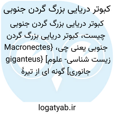 {Macronectes giganteus} [زیست شناسی- علوم جانوری] گونه ای از تیرۀ کبوتردریائیان و راستۀ کبوتردریایی سانان که بزرگ ترین عضو خانواده است؛ منقار زرد بزرگی دارد و سر و گردن و سینه اش قهوه ای روشن و باقی بدنش دارای رگه های قهوه ای است