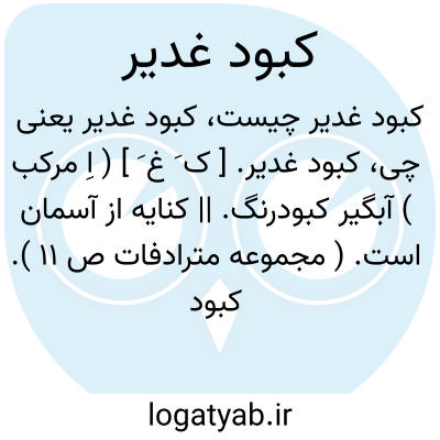 کبود غدیر. [ ک َ غ َ ] ( اِ مرکب ) آبگیر کبودرنگ. || کنایه از آسمان است. ( مجموعه مترادفات ص 11 ). کبود حصار. کبود طشت: