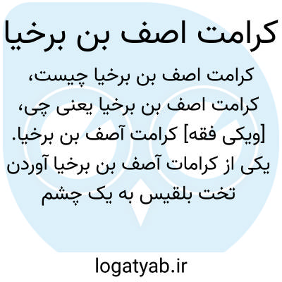 [ویکی فقه] کرامت آصف بن برخیا. یکی از کرامات آصف بن برخیا آوردن تخت بلقیس به یک چشم به هم زدن بود.