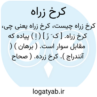 کرخ زراه. [ ک َ زَ ] ( اِ ) پیاده که مقابل سوار است. ( برهان ) ( آنندراج ). کرخ زرده. ( صحاح الفرس ). و من گمان میکنم که هر دو مصحف است. ( یادداشت مؤلف ).
