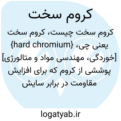 {hard chromium} [خوردگی، مهندسی مواد و متالورژی] پوششی از کروم که برای افزایش مقاومت در برابر سایش بر روی مادۀ دیگر ایجاد می کنند
