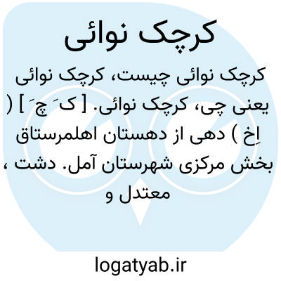 کرچک نوائی. [ ک َ چ َ ] ( اِخ ) دهی از دهستان اهلمرستاق بخش مرکزی شهرستان آمل. دشت، معتدل و مرطوب است و 105 تن سکنه دارد. ( از فرهنگ جغرافیایی ایران ج 3 ).