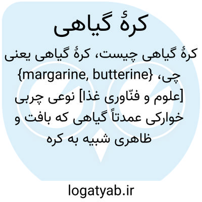 {margarine, butterine} [علوم و فنّاوری غذا] نوعی چربی خوارکی عمدتاً گیاهی که بافت و ظاهری شبیه به کره دارد متـ. کرۀ نباتی