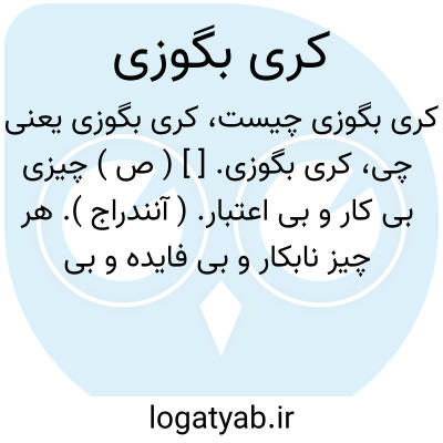 کری بگوزی. [ ] ( ص ) چیزی بی کار و بی اعتبار. ( آنندراج ). هر چیز نابکار و بی فایده و بی قدر و قیمت. ( ناظم الاطباء ).