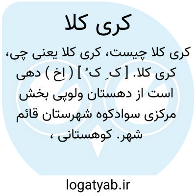 کری کلا. [ ک ِ ک ُ ] ( اِخ ) دهی است از دهستان ولوپی بخش مرکزی سوادکوه شهرستان قائم شهر. کوهستانی، معتدل و مرطوب است و 150 تن سکنه دارد. محصول آنجا برنج و غلات و شغل اهالی آنجا زراعت و گله داری است. ( از فرهنگ جغرافیایی ایران ج 3 ).