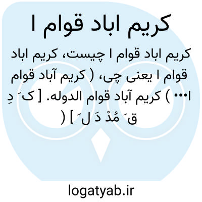 لغت نامه دهخدا ( کریم آباد قوام ا••• ) کریم آباد قوام الدوله. [ ک َ دِ ق َ مُدْ دَ ل َ ] ( اِخ ) دهی است از دهستان غار شهرستان ری. جلگه و معتدل است و 215 تن سکنه دارد. ( از فرهنگ جغرافیایی ایران ج 1 ).