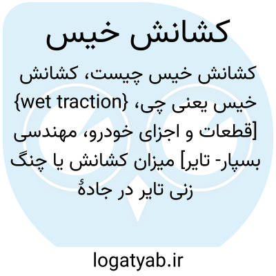 {wet traction} [قطعات و اجزای خودرو، مهندسی بسپار- تایر] میزان کشانش یا چنگ زنی تایر در جادۀ خیس و توانایی آن در پخش آب برای مقابله با آب پیمایش