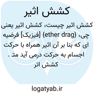 {ether drag} [فیزیک] فرضیه ای که بنا بر آن اثیر همراه با حرکت اجسام به حرکت درمی آید متـ. کشش اتر