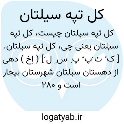 کل تپه سیلتان. [ ک ُ ت َپ ْ پ ِ س ِ ل َ] ( اِخ ) دهی از دهستان سیلتان شهرستان بیجار است و 280 تن سکنه دارد. ( از فرهنگ جغرافیایی ایران ج 5 ).