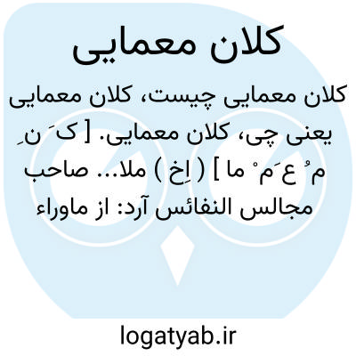 کلان معمایی. [ ک َ ن ِ م ُ ع َم ْ ما ] ( اِخ ) ملا... صاحب مجالس النفائس آرد: از ماوراء النهر است و به هرات آمده مطالعه می کند و معما را خوب می داند و بیت زیر از اوست: