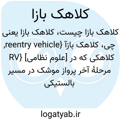 {reentry vehicle, RV} [علوم نظامی] کلاهکی که در مرحلۀ آخر پرواز موشک در مسیر بالستیکی (ballistic ) رها می شود