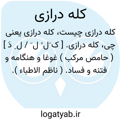 کله درازی. [ ک َل ْ ل َ / ل ِ دَ ] ( حامص مرکب ) غوغا و هنگامه و فتنه و فساد. ( ناظم الاطباء ).