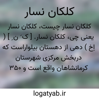 کلکان نسار. [ ک َ ن ِ ] ( اِخ ) دهی از دهستان بیلواراست که دربخش مرکزی شهرستان کرمانشاهان واقع است و 350 تن سکنه دارد. ( از فرهنگ جغرافیایی ایران ج 5 ).