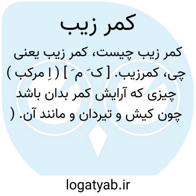 کمرزیب. [ ک َ م َ ] ( اِ مرکب ) چیزی که آرایش کمر بدان باشد چون کیش و تیردان و مانند آن. ( آنندراج ) ( فرهنگ فارسی معین ). هرچیز که برای زینت و آرایش کمر بکار برند. ( ناظم الاطباء ).