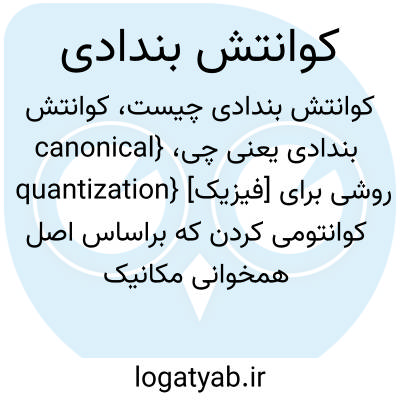 {canonical quantization} [فیزیک] روشی برای کوانتومی کردن که براساس اصل همخوانی مکانیک کوانتومی با مکانیک کلاسیک استوار است