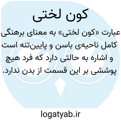 کون لختی. [ ل ُ ] ( حامص مرکب ) برهنگی کون و عورت کسی. ( فرهنگ فارسی معین ). کون برهنگی.