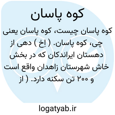 کوه پاسان. ( اِخ ) دهی از دهستان ایراندکان که در بخش خاش شهرستان زاهدان واقع است و 200 تن سکنه دارد. ( از فرهنگ جغرافیایی ایران ج 8 ).