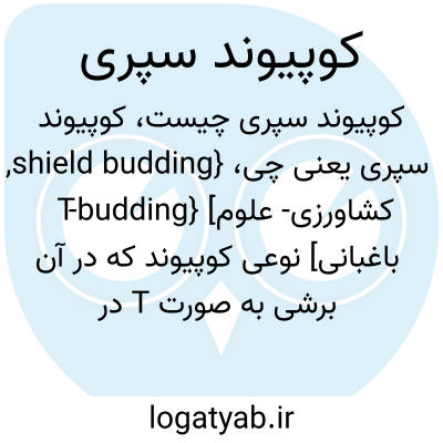 {shield budding, T-budding} [کشاورزی- علوم باغبانی] نوعی کوپیوند که در آن برشی به صورت T در پایه زده می شود و پیوندک حاوی یک جوانه از بالا در زیر پوست پایه قرار می گیرد متـ. کوپیوند شکمی