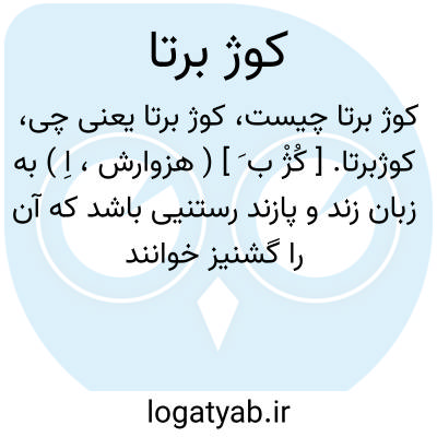 کوژبرتا. [ کُژْ ب َ ] ( هزوارش، اِ ) به زبان زند و پازند رستنیی باشد که آن را گشنیز خوانند و به عربی کزبره گویند. ( برهان ) ( ناظم الاطباء ). هزوارش، کوزبرتا و در پهلوی «گشنیچ ». ( از حاشیه برهان چ معین ).