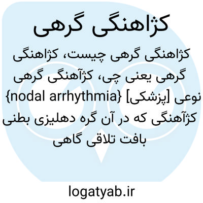 {nodal arrhythmia} [پزشکی] نوعی کژآهنگی که در آن گره دهلیزی بطنی بافت تلاقی گاهی (junctional tissue ) مجاور به منزلۀ ضربان ساز عمل می کند