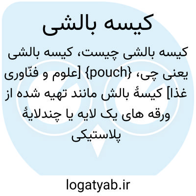 {pouch} [علوم و فنّاوری غذا] کیسۀ بالش مانند تهیه شده از ورقه های یک لایه یا چندلایۀ پلاستیکی که از آن برای بسته بندی غذا استفاده شود