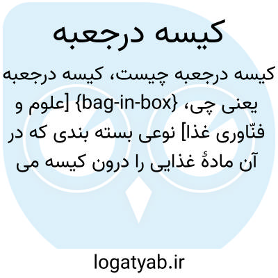 {bag-in-box} [علوم و فنّاوری غذا] نوعی بسته بندی که در آن مادۀ غذایی را درون کیسه می ریزند و درزگیری می کنند و سپس کیسه را در درون جعبه قرار می دهند