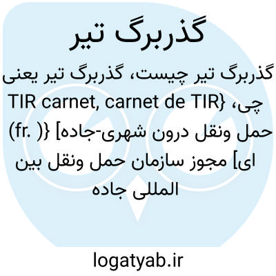 {TIR carnet, carnet de TIR (fr. )} [حمل ونقل درون شهری-جاده ای] مجوز سازمان حمل ونقل بین المللی جاده ای (TIR ) به وسایل نقلیۀ باری برای عبور از مرز کشورهای عضو با برخورداری از تسهیلات گمرکی
