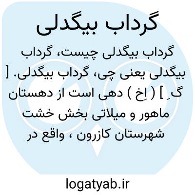 گرداب بیگدلی. [ گ ِ ] ( اِخ ) دهی است از دهستان ماهور و میلاتی بخش خشت شهرستان کازرون، واقع در 48000گزی شمال کنارتخته. هوای آن گرمسیری و دارای 100 تن سکنه است. آب آن از چشمه تأمین میشود. محصول آن غلات و شغل اهالی زراعت و صنایع دستی زنان قالی بافی است. ( از فرهنگ جغرافیایی ایران ج 7 ).