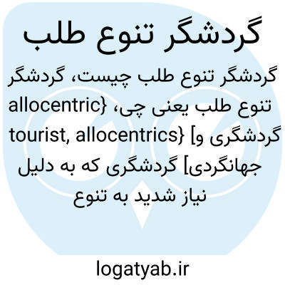 {allocentric tourist, allocentrics} [گردشگری و جهانگردی] گردشگری که به دلیل نیاز شدید به تنوع طلبی به دنبال مقصدهایی است که به او فرصت کسب تجربه های متفاوت فرهنگی و محیطی را می دهد