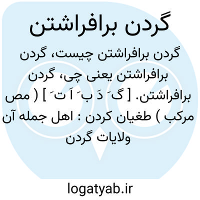 گردن برافراشتن. [ گ َ دَ ب َ اَ ت َ ] ( مص مرکب ) طغیان کردن: اهل جمله آن ولایات گردن برافراشته تا نام ما بر آن نشیند و به ضبط ما آراسته گردد. ( تاریخ بیهقی ).